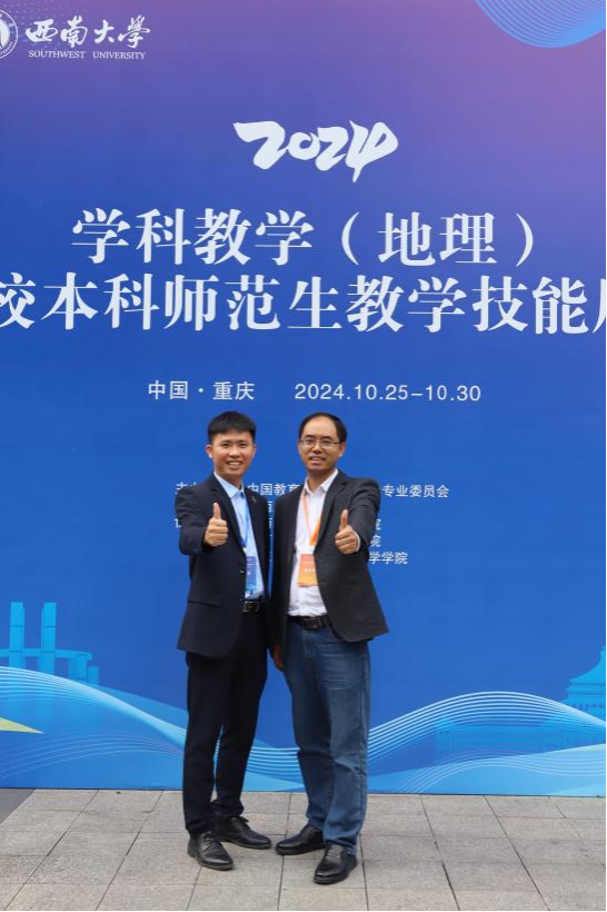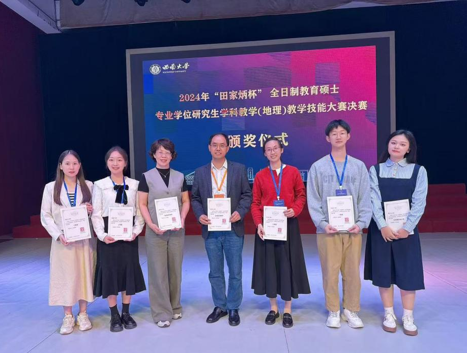 日前,田家炳杯全日制教育硕士专业学位研究生学科教学(地理)教学技能大赛决赛结果公布。由我院廖伟业、卢炳雄、梁浩原、张胜前老师领队并指导的2023级学科教学(地理)专业5位参赛同学与全国131位选手决赛竞技,再创佳绩。其中郭金沙荣获一等奖,徐梦龙荣获二等奖,黄飞扬、吴镜佚荣获三等奖,覃石凤荣获优秀教学设计奖,廖伟业老师、张胜前老师获得优秀指导教师奖。