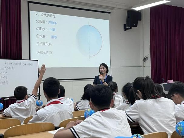 陈美萍:“三人行,必有我师焉”。作为一名实习老师,向老教师学习是快速成长的好办法。这次实习,我们认真聆听了多位优秀教师的精彩授课,比较了初、高中的地理教学模式。在10月中旬,我们一起观摩学习了拥有多年教学经验的初中地理备课组长陈美荣老师为“国培项目”培训班学员展示的一节优秀的示范课——《2.1地球与地球仪——经线与经度、经纬网》,该课以“帮助吉日嘎拉先生找大红牛”为情境,贯穿整个地理课堂,在课堂最后,让学生在泡沫球上绘制经线,充分体现以学生为主的教学理念。总之,这次实习我们学习到了多样化的教学方法与创新的教学理念,收获颇多。