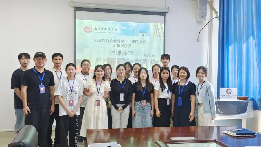 金秋九月,天高云淡,阳光温馨而明媚。21地科陶班一行在校长助理黄老师的带领下踏入新民中学的校门。在见面会上,黄老师介绍了学校概况以及实习注意事项和要求,并介绍指导教师与全体实习生相互认识,做好了后续实习安排,由此揭开21地科陶班第二次教育实习的序幕。