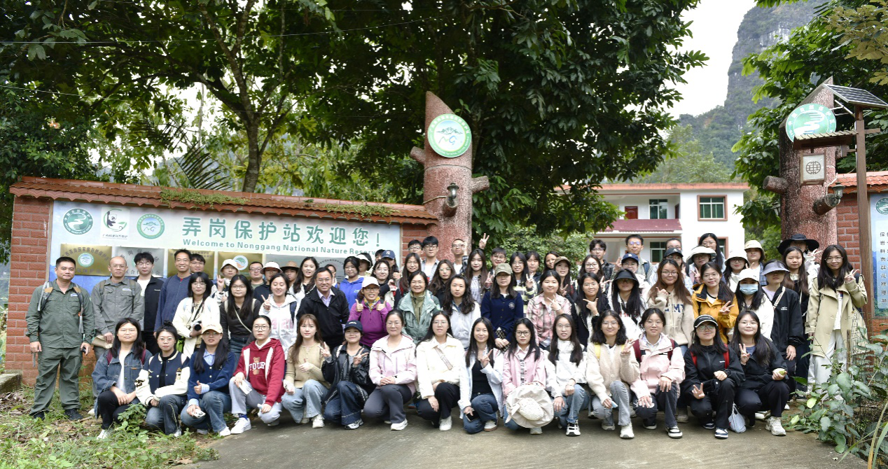 研学队伍在弄岗自然保护区考察生态环境和物种保护情况
