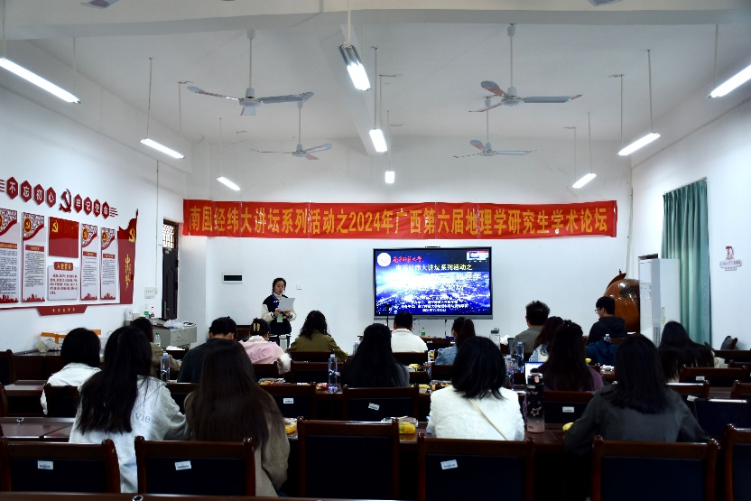 2024年11月30日,广西地理学会主办的2024年度广西第六届地理学研究生学术论坛在南宁师范大学开展,本次论坛采用线上、线下两种形式结合开展,线上选用腾讯会议形式,线下则在武鸣校区地源楼C401、B205、B304三个教室举行。本次论坛聚焦“地理学与人类命运共同体”主题,邀请张胜前教授、廖伟业副教授、钟聪副研究员等地理专家对参赛作品进行遴选,并作为嘉宾出席论坛。
