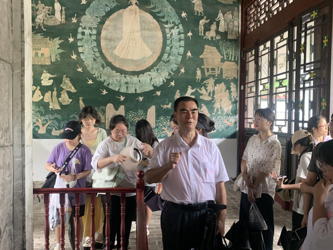 (李忠标老师在雷塘庙前为同学们讲解知识)