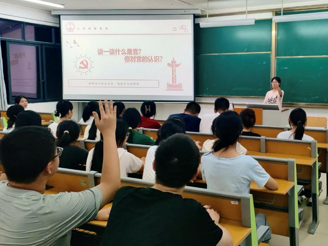 活动伊始,玉文颖同志围绕“谈谈对党的认识”这一主题,与新生展开互动,引导大家分享对党的初步认知。随后,通过组织新生观看党史视频,进一步深化了新生对党的理解,帮助他们明晰党的初心与使命,树立正确的入党动机。紧接着,黄美寒同志结合工作实际,系统介绍了入党基本流程,并详细讲解入党申请书的书写规范与内容要求,为有意向入党的新生提供了清晰指引。在自由提问环节中,新生围绕入党条件、培养考察流程等问题踊跃提问,玉文颖同志、黄美寒同志依据党支部工作要求,逐一作出细致解答,并鼓励大家在日常学习生活中加强理论修养、提升综合能力,以实际行动向党组织靠拢。