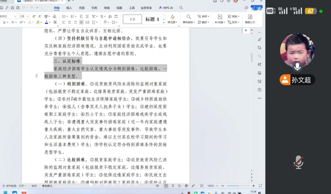 随后,孙文超老师开展专题培训。他围绕家庭经济困难学生认定的官方通知及配套附件进行详细解读,针对文件重点、易混淆条款与实操难点逐一拆解,并结合过往案例举例说明,帮助参会人员快速吃透认定标准、掌握操作细节。培训尾声,孙老师耐心回应各年级资助委员的疑问,解答流程衔接、材料审核等方面的困惑,确保每位参会人员都能明确职责、熟练掌握工作方法。