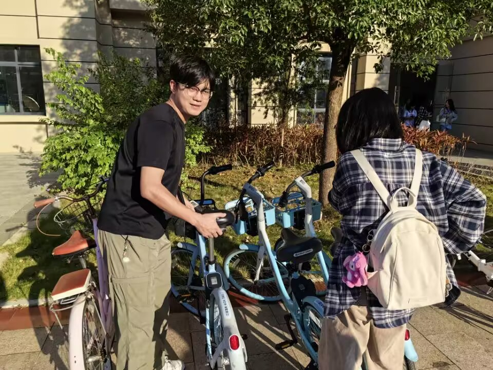10月30日下午,24地科五班全体同学在武鸣校区东门右侧停车场、实验楼二号教学楼周边、兰园篮球场及兰园食堂附近区域,组织开展了共享单车规范摆放志愿服务活动。