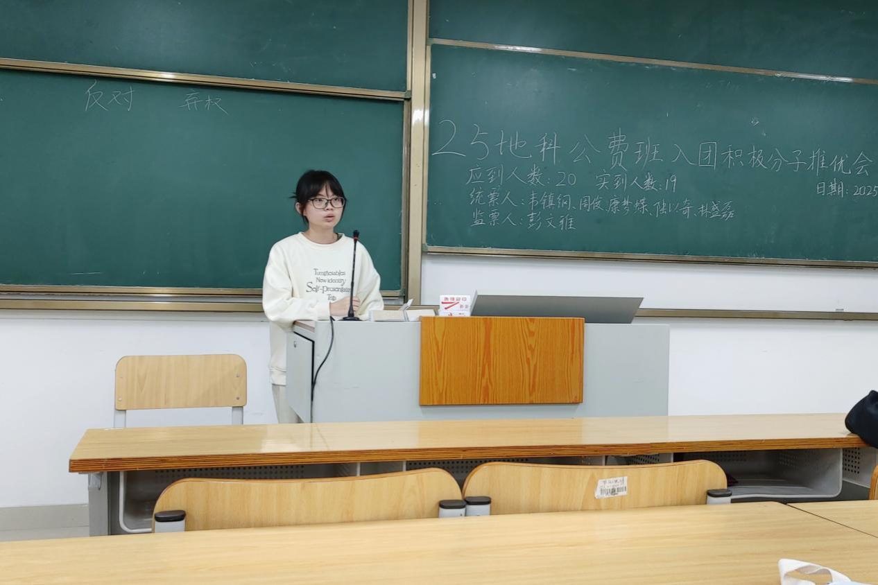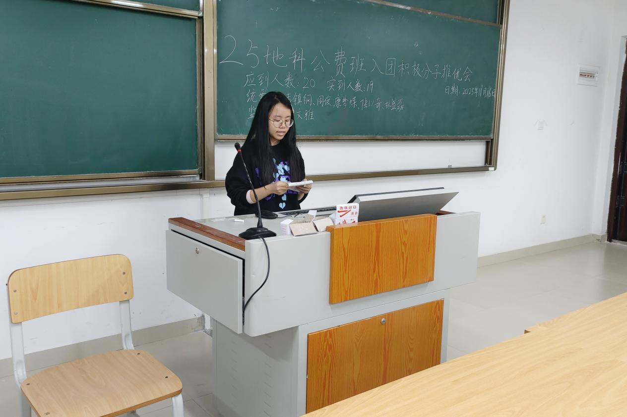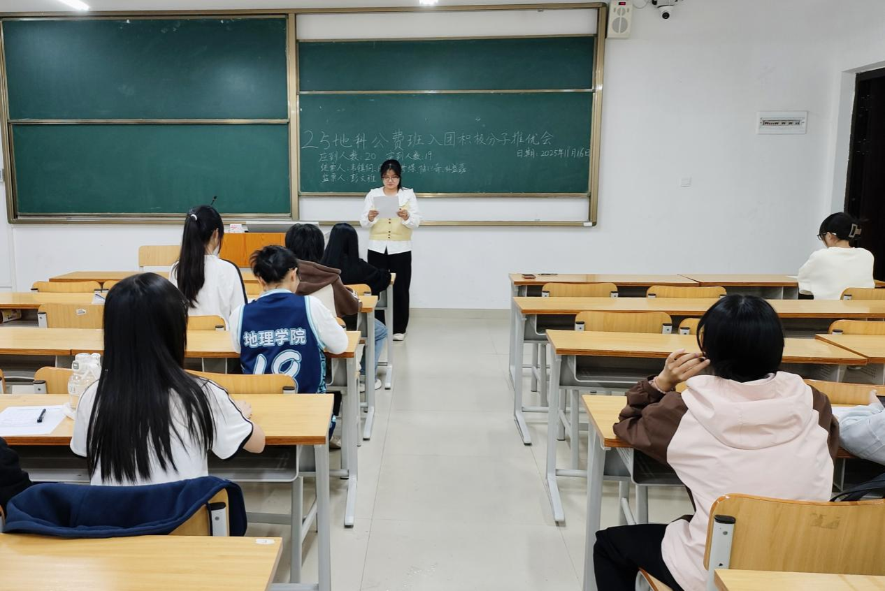 11月16日,必威西汉姆联2025级地科公费班在武鸣校区实验楼2号楼C102教室顺利召开入团积极分子推优会。会议由团支书康梦蝶同志主持,助理班主任彭文雅同志出席会议,2025级地科公费班全体同学参与会议。