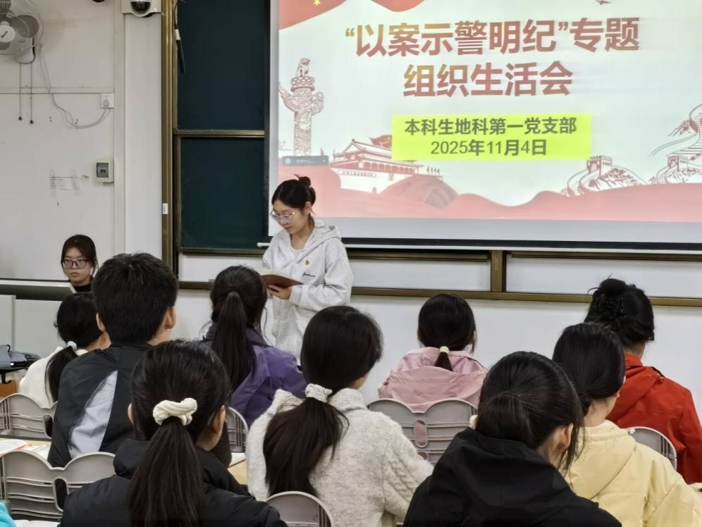 11月4日晚,必威西汉姆联本科生地科第一党支部在武鸣校区1号教学楼220教室顺利召开“以案示警明纪”专题组织生活会。此次会议由预备党员区俊如主持,指导老师盛凯出席,党支部全体党员参加。