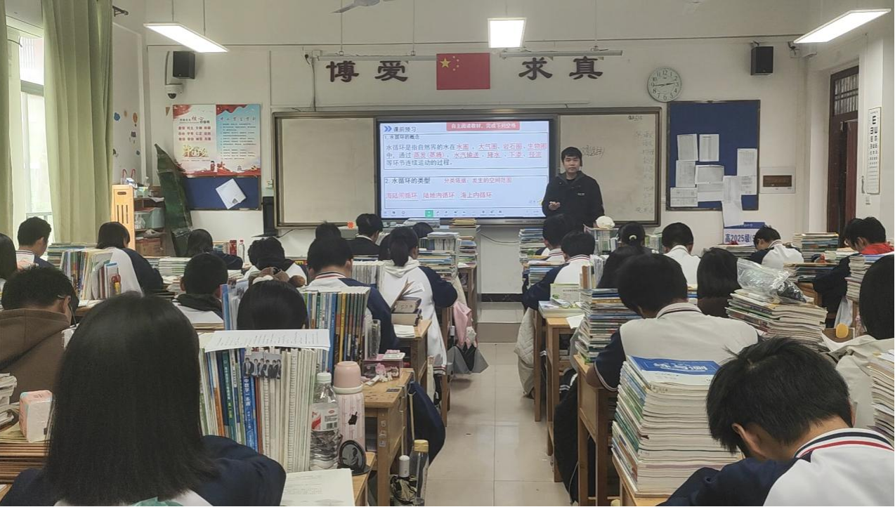 实习初期,11位实习生始终将听课学习作为夯实教学基础的核心任务,全身心投入指导教师与校内优秀地理教师的课堂观摩中。在每一节地理课上,实习生们带着明确的学习目标认真聆听、细致记录,不仅精准捕捉课堂教学的核心脉络,更着重关注教学目标与地理学科核心素养的契合度,分析不同教学环节如何衔接过渡以保障课堂流畅性。此外,实习生们还注重对比分析不同教师的教学风格,有的侧重逻辑严谨的知识推导,有的擅长生动有趣的情境创设,有的注重理论与生活实际的结合。通过深入剖析各位教师的课堂调控技巧——如何把握教学节奏、应对突发问题、调动学生参与积极性,实习生系统地梳理了地理学科“因材施教”的实践路径,明确适配不同学生认知水平与学习需求的教学方法。这段集中的听课学习经历,让11位实习生较为全面地吸收了地理学科优质课堂的教学经验,为后续独立开展地理教学工作积累了丰富且实用的教学案例,筑牢了专业成长的根基。