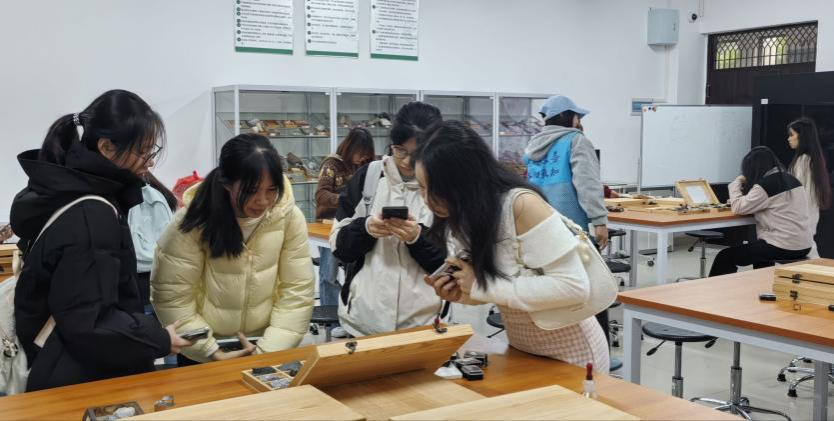 活动伊始,在工作人员的有序引导下,同学们来到地质标本室,通过直观观察岩石构造、亲手触摸演示标本,真切感受地质作用的神奇力量。讲解员还结合标本特征,耐心讲解化石的形成过程,帮助同学们初步了解各类岩石的特性。紧接着,同学们走进霞客园,感悟徐霞客的探险精神与陶行知的教育理念。随后,同学们在自然资源馆中了解到广西丰富的自然资源及其对经济发展、日常生活的重要影响。最后,同学们前往圆顶天文馆观看科普影片,从而激发大家对宇宙的思考与科学探索的兴趣。