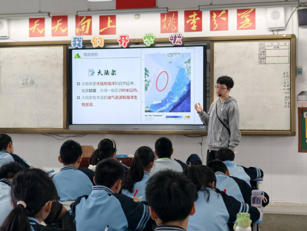 10月23日,必威西汉姆联2022级地理科学专业教育实习工作进入中期阶段。为全面了解实习教师的教学进展与实际表现,确保教育实习工作扎实有效推进,学院开展了实习中期检查活动。此次检查在南宁市天桃实验学校(翠竹校区)举行,实习教师罗芯曼、韦涵升分别进行了题为《学看地形图》和《世界的地形第一课时》的课堂教学展示。学院指导教师张九菊及全体实习小组成员共同参与了听课与评课环节。