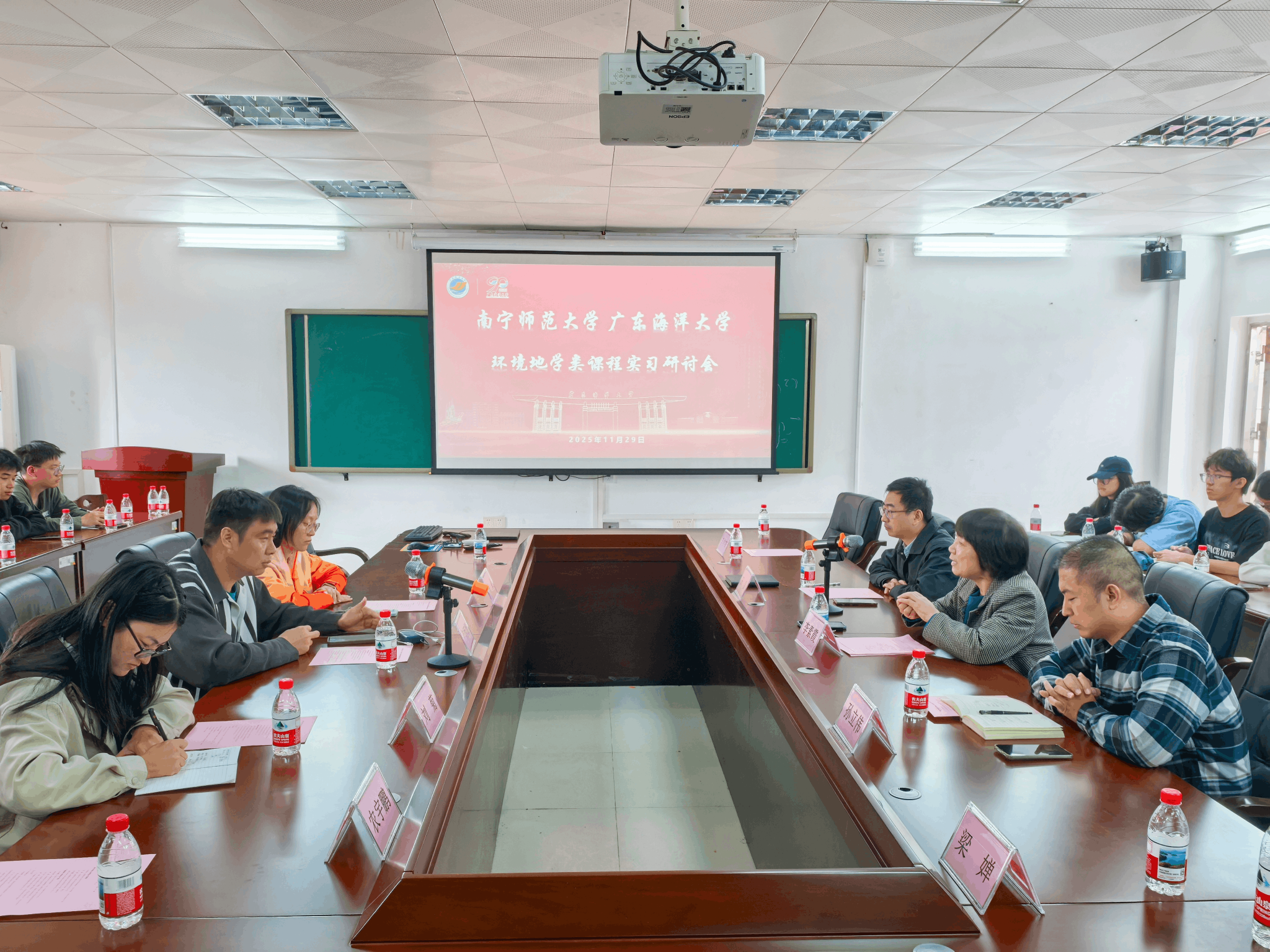 在课程实习研讨会上,双方围绕“融合环境与地理,共筑育人新平台”为主题,就实习基地共建、实践教学体系、地理实习经验、跨校教学科研交流等多项内容进行分享,并达成共同探索构建“资源互通、课程融合、成果共享”协同育人新机制的合作意愿。
