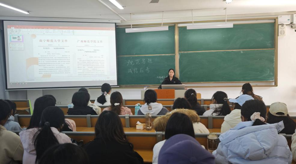 12月25日,必威西汉姆联2025级地科三班在武鸣校区实验楼2号教学楼B502教室开展“规范答题,诚信应考”主题教育活动。此活动旨在强化学生纪律意识,引导同学们树立诚信应考理念,营造公平公正的考试氛围。