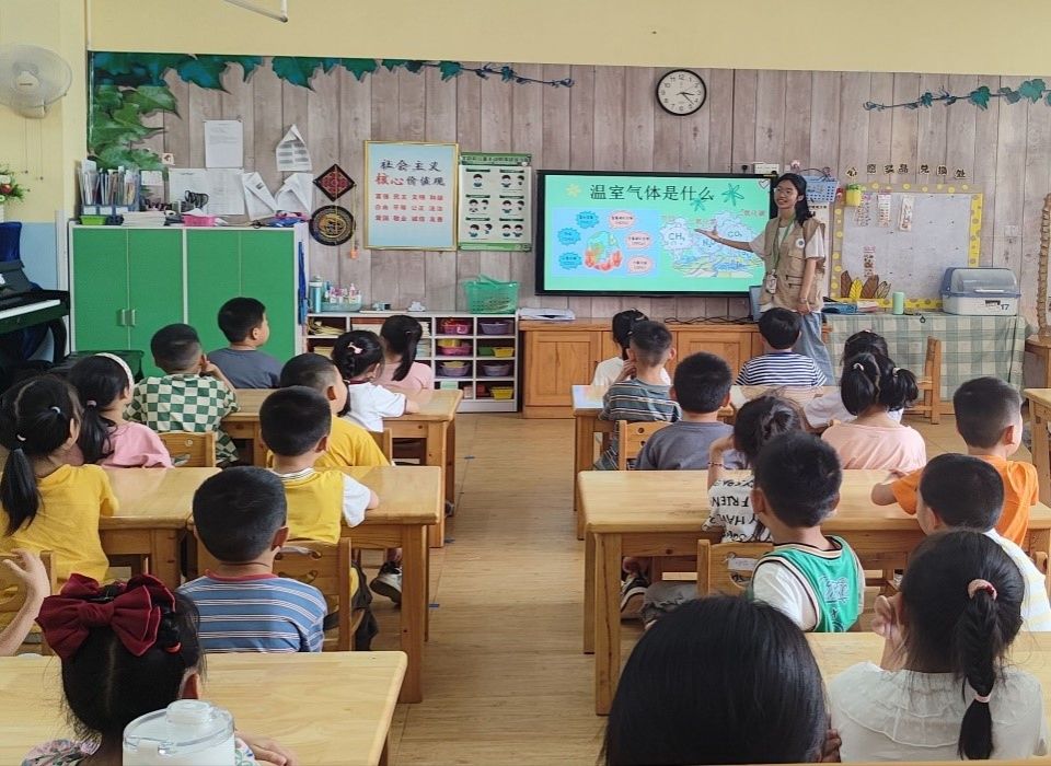 (支教队员向小朋友们讲述温室气体的相关知识)