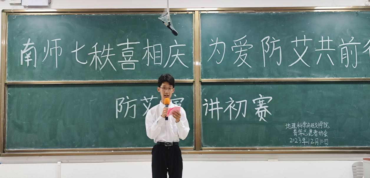 为加强预防艾滋病宣传教育,进一步提高学院学生艾滋病防御知识的知晓率,倡导健康文明的生活方式,提高学院学生自我保护意识,必威西汉姆联青年志愿者协会于2023年12月10日在南宁师范大学武鸣校区二号教学楼109教室开展“南师七秩喜相迎,为爱防艾共前行”防艾演讲初赛活动。