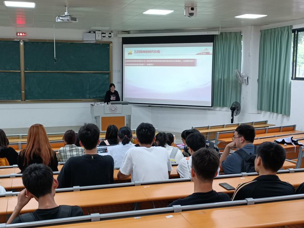活动伊始,团支书杨碧霞对五四精神的内涵进行了全面的阐述,让同学们对五四精神有了更深入的了解。紧接着,团支书向同学们介绍五四精神的时代内涵。她指明五四精神历经百年沧桑岁月,始终是中华民族伟大复兴事业的一面旗帜;始终是视线国家富强、人民幸福的力量源泉;始终是启发和促进中华民族觉醒的巨大动力。随后,团支书组织大家一起进入红色观影环节。该五四短片通过回顾党和团的光辉业绩,展示新时代下中国的快速发展,让同学们从革命先辈们身上学习到了他们的坚定意志和不屈不挠的革命精神,也让同学们更加坚定红色信仰,明确奋斗目标和方向。最后,团支书呼吁大家弘扬五四精神,要敢于有梦、勇于追梦、勤于圆梦,争做一名合格团员。