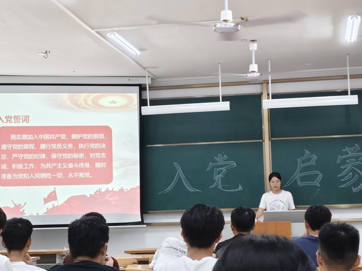 为加强同学们的入党启蒙教育,2024年9月21日,2024级地科类八班在武鸣校区实验楼2-C204教室成功开展入党启蒙活动。本次活动由班级驻党覃韦梅、韦靖两位同志共同组织,24级地科类八班全体同学共同参与。