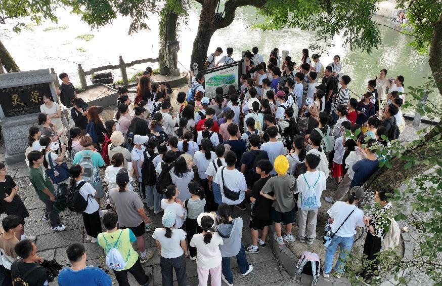 9月5日上午,师生们步行参观了历史悠久的灵渠,深入了解了兴安灵渠开凿的历史背景和重要意义。在秦年秀老师的悉心讲解下,同学们对飞来石、南渠与北渠等灵渠相关的地理结构、工程建设思路和技术有了更深刻的认识。下午,师生们继续参观了灵渠博物馆,对灵渠的选址和工程特点进行了深入分析,被其精巧的设计所折服。同时,同学们还探讨了地域文化的形成与自然地理环境的关系,以及如何更好地保护地域文化。面对灵渠开发与保护面临的挑战,同学们纷纷表示将共同思考对策,为文化遗产的保护贡献力量。