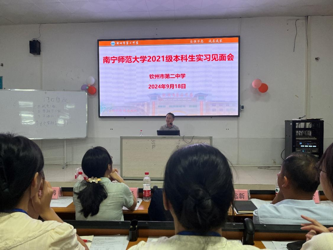 2024年9月18日,学院院长助理卢炳雄副教授组织带队2021级地理科学专业13名学生前往钦州市第二中学开展教育实习活动。