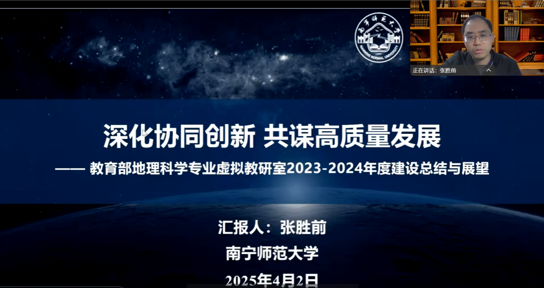 活动伊始,南宁师范大学张胜前教授以《深化协同创新共谋高质量发展:教育部地理科学专业虚拟教研室建设总结与展望》为题进行报告,报告全面回顾了2024年度虚拟教研室建设进展年度报告,展示了新版虚拟教研室功能以及知识图谱、能力图谱服务升级等内容。这不仅展示了虚拟教研室在技术层面的创新,更为地理教育的数字化转型提供了有力支撑。 同时,报告还对2025年的系列教研活动进行了详细规划,涉及地理教师教育课程群、自然地理课程群、人文地理课程群、信息地理课程群和地理实践课程群。这些规划将进一步加强课程群之间的协同创新,促进地理教育的全面发展。