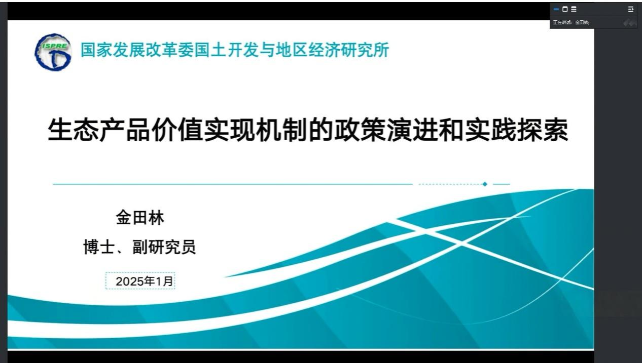 首先,赵银军教授隆重介绍金田林博士和朱梦洵博士,并对他们百忙之中抽空指导表示诚挚的感谢。随后金田林博士以“生态产品价值实现机制的政策演进和实践探索”为题,清晰阐释了生态产品价值实现机制的基本概念和重要性,系统性梳理了政策从早期萌芽到逐步完善的演进过程,最后分享了实例实践探索过程、成效以及面临的挑战。朱梦洵博士以“生态产品总值核算和特定单元价值核算的区别与联系”为题,结合自己的工作实践经历向大家剖析了这两种核算框架与底层逻辑的区别与联系,进一步加深了我们对两个核算方式的理解。会后在互动环节,师生们积极提问,与两位专家进行了深入交流。本次报告会取得圆满成功,报告会为师生们提供了一个与专家交流的平台,拓宽了学术视野。