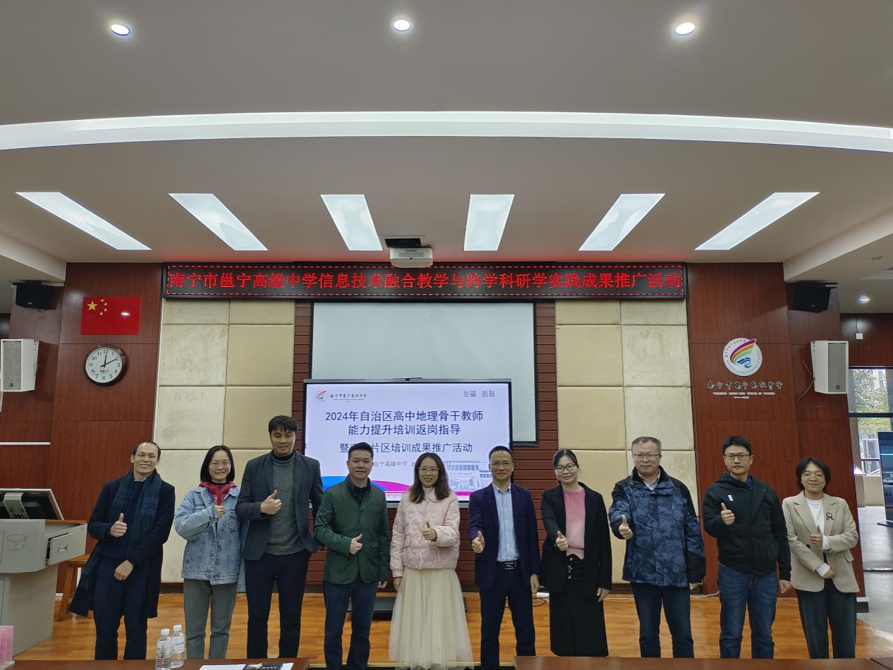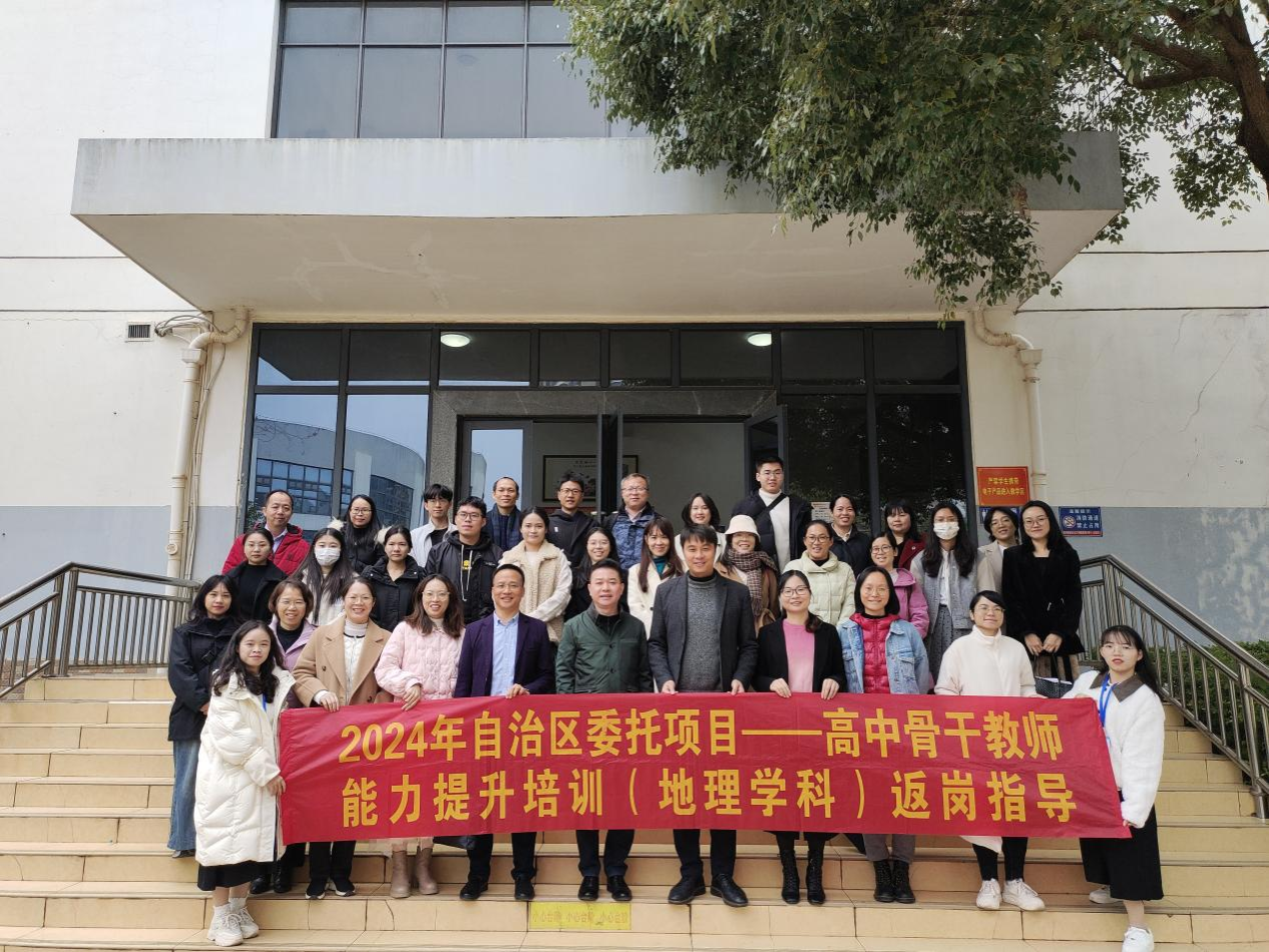 学院专家团队与外聘专家在扶绥县第三中学、百色田阳高中和南宁市邕宁高级中学开展了学员示范课观摩与评课、专家微专题报告等活动;在柳州市柳江中学岜公塘校区听取了该校市级地理学科基地建设成果展示汇报并对后续建设给予针对性指导;在南宁市第八中学、马山县马山中学则深入学员常规课堂听课并作课后交流指导。通过形式多样的活动,返岗指导工作以具体学员为对象,依托学员所在学校开展地市片区的返岗指导暨培训成果推广,实现了“以点带面,辐射带动”的工作目标。