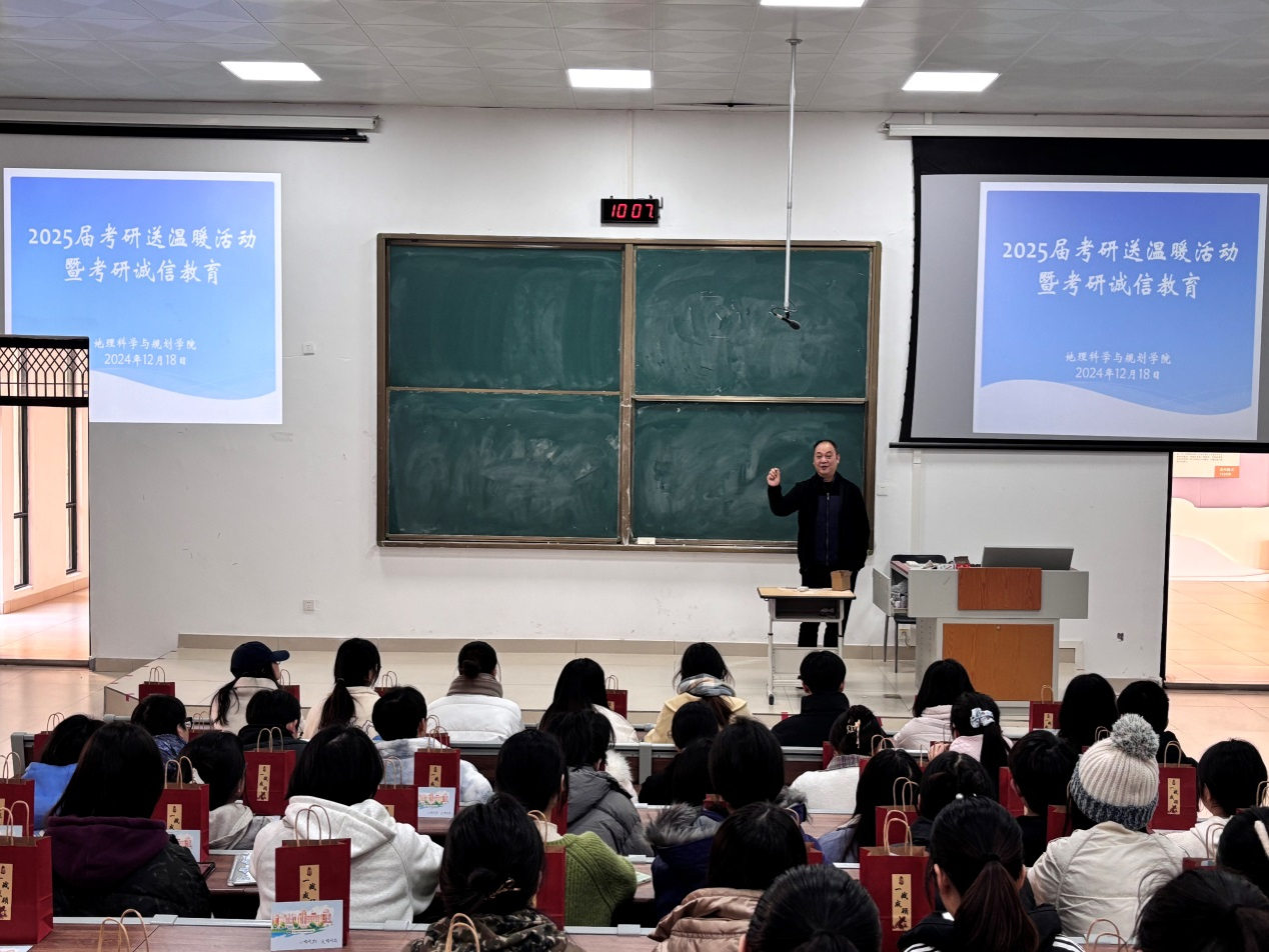 2025年研究生入学考试在即,为缓解考研学子备考压力,坚定冲刺信心,增强同学们诚信考试意识,12月18日,学院在地源楼B107为考研学子举办送温暖活动及开展诚信教育。学院党委书记严志强、党委副书记盛凯、分团委副书记蔡琪以及50余名考研学子代表参加活动。