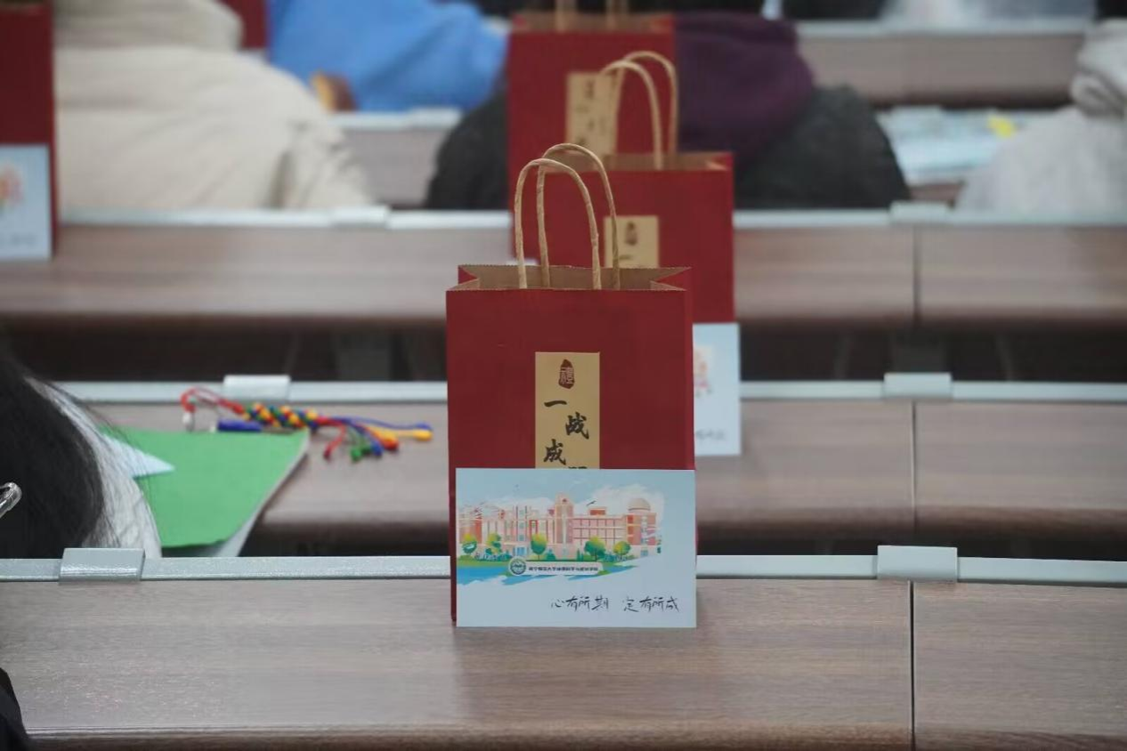 会议伊始,严志强书记和盛凯副书记共同表达了对考研学子们“心有所期,定有所成”的期望。随后,盛凯副书记对考研学子们提出“诚信考试,沉着应战”的要求。最后,他还对考研学子们表达了深深的祝福,希望考研学子们得偿所愿,一战成硕。此外,学院给每位考研学子都准备了一份小礼品,里面装有一个小橙子和一张小卡片,表达了学院对考研学子们心想事“橙”的祝福和期盼。盛凯副书记也表示,如若在备考坏境这一方面有需求,可以向学院提出,学院会尽力为考研学子们提供一个舒适的备考环境。