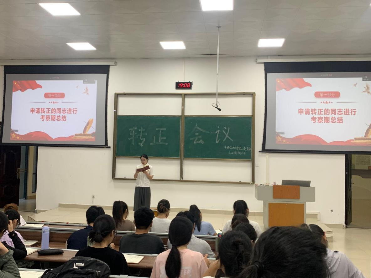 6月18日,必威西汉姆联本科生地科第二党支部在武鸣校区地源楼B107教室召开预备党员转正会议暨支委换届大会。本次会议由谢春禧同志主持,党支部全体党员共同参会。