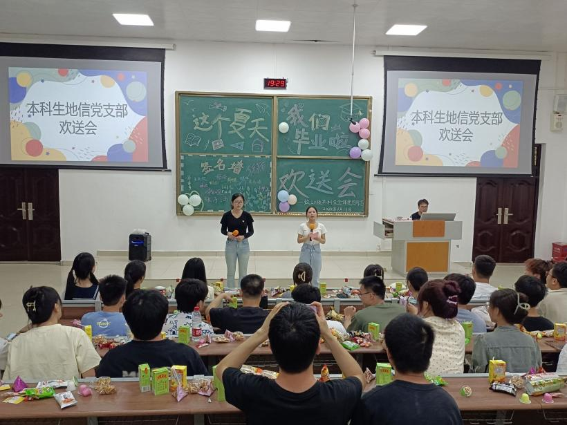 6月16日,本科生地信党支部在南宁师范大学武鸣校区地源楼B107教室召开本科生地信党支部2024届毕业生党员欢送会。活动由綦文嘉和韦妙茵同志主持,全体党员参会。
