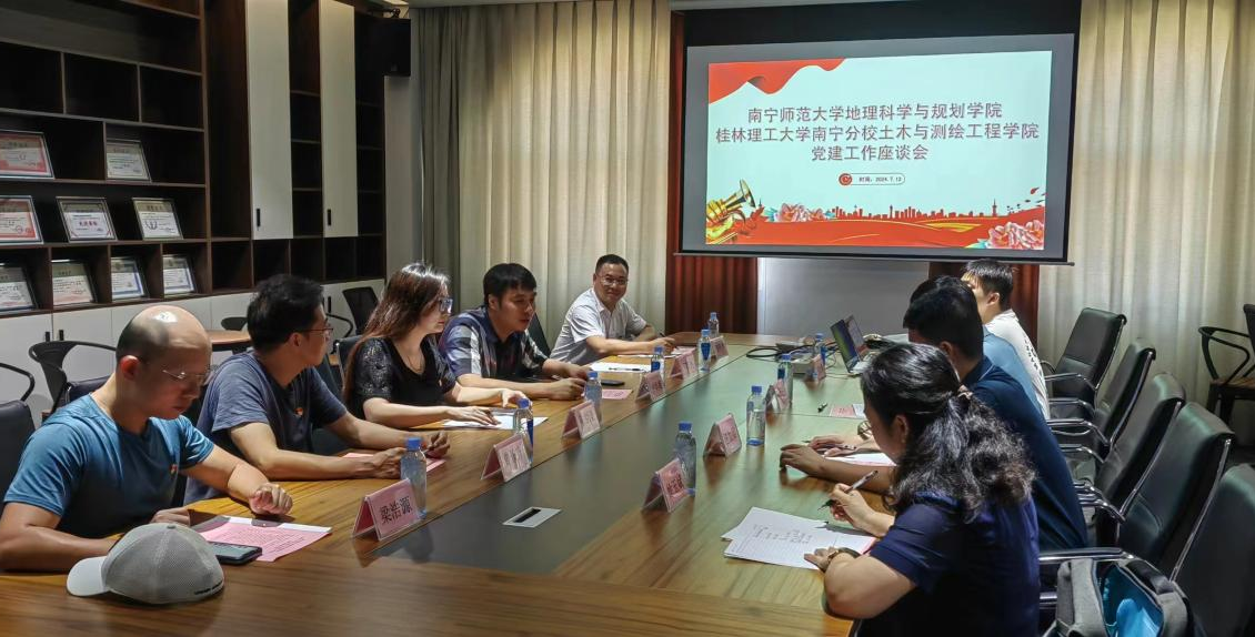 为深入学习贯彻习近平新时代中国特色社会主义思想和习近平总书记关于新质生产力的重要论述,全面贯彻党的教育方针,落实立德树人根本任务,按照“工作经验共享、廉政风险共防、廉洁教育互促”的共建原则,必威西汉姆联和桂林理工大学南宁分校土木与测绘工程学院联合开展“联学共建推动党纪教育”主题党日活动。出席本次活动的有地理学院党委、院长助理卢炳雄,地理学院党委、教工第一支部书记陈雪滢及教工党员代表,桂工南宁分校土木与测绘工程学院党委书记刘茂军,学院党委副书记、学院院长汪家梁及教工党员代表。