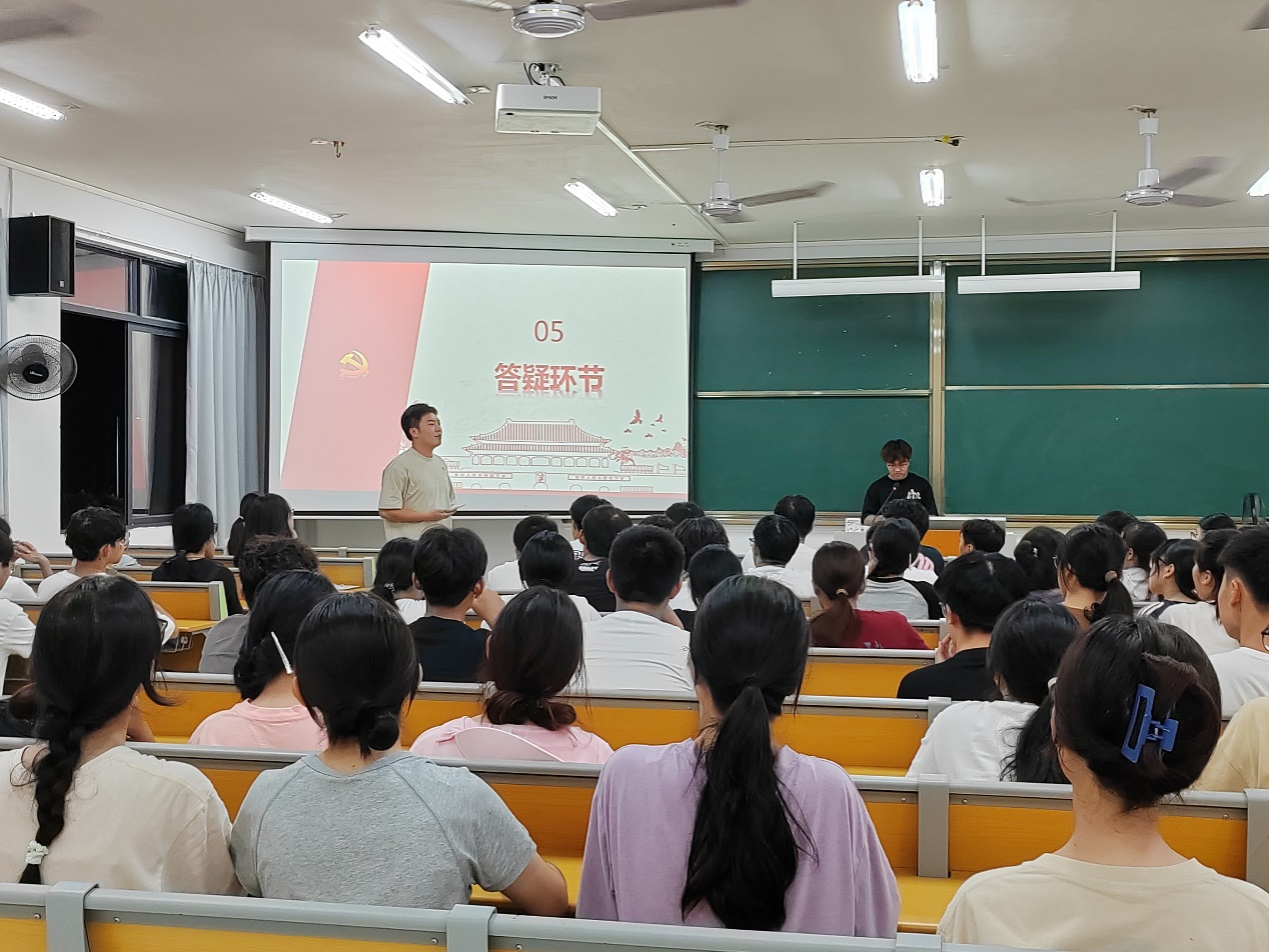 2024年9月20日,学院本科生地信党支部于南宁师范大学武鸣校区实验楼2-A204教室开展新生入党启蒙教育。活动由班级驻党赵生、李乐彬同志共同主持,地信党支部书记罗岩同志、宣传委员方家鑫同志以及24级地科类六班、24级地科类七班全体新生参会。