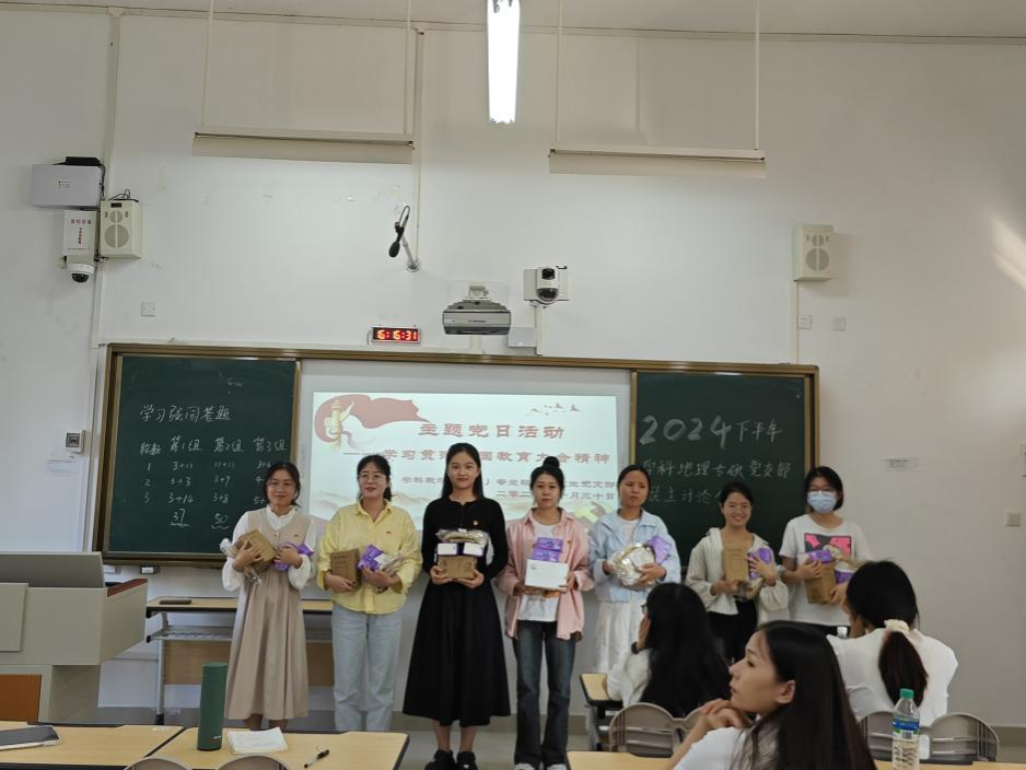 活动伊始,姜婕同志组织全体支部成员观看全国教育大会相关的视频资料,随后党员同志纷纷发表观后感,并表示要不断提高自身专业水平,以更高的标准要求自己,为教育事业发展贡献自己的力量。接着以小组为单位进行“学习强国”趣味答题PK等竞赛活动,党员同志积极参与,气氛非常活跃。最后,各参赛小组颁发奖品并进行合影留念。