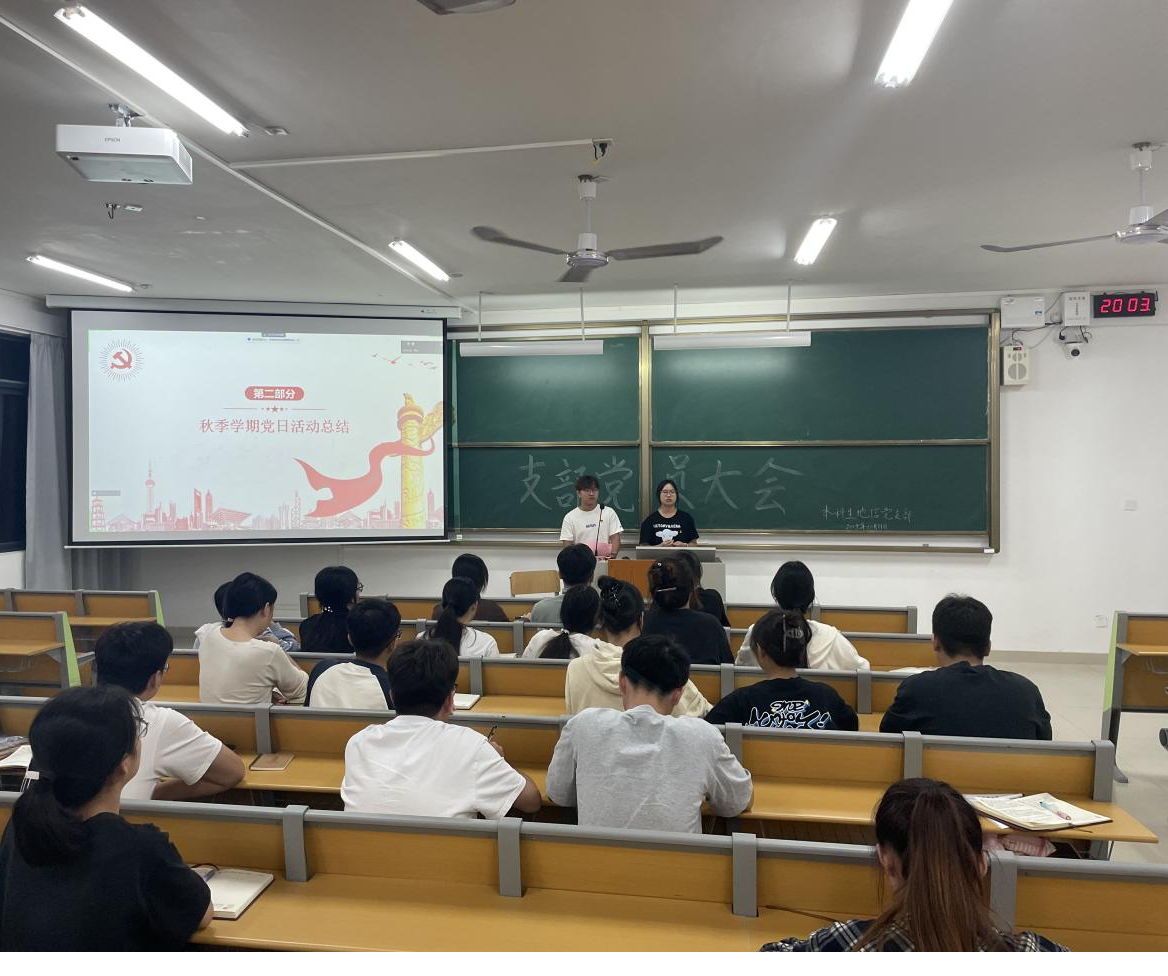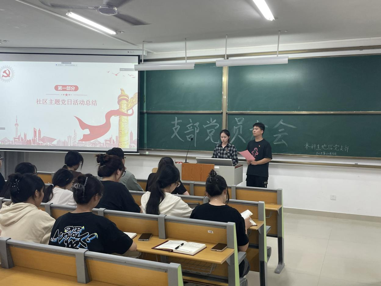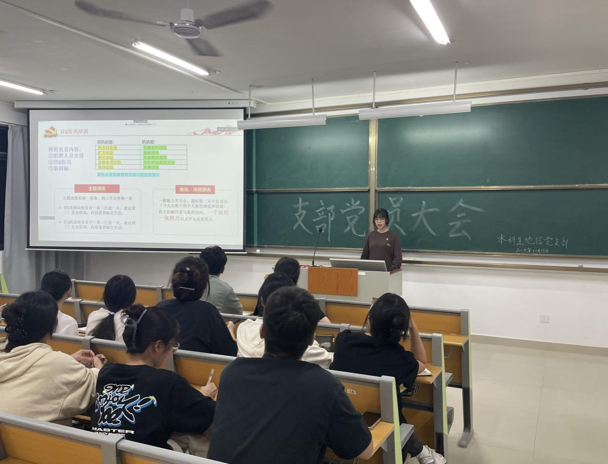 2024年10月31日,必威西汉姆联本科生地信党支部在南宁师范大学武鸣校区实验楼2-A201召开支部党员大会,会议由支部宣传委员方家鑫同志主持,全体党员参会。