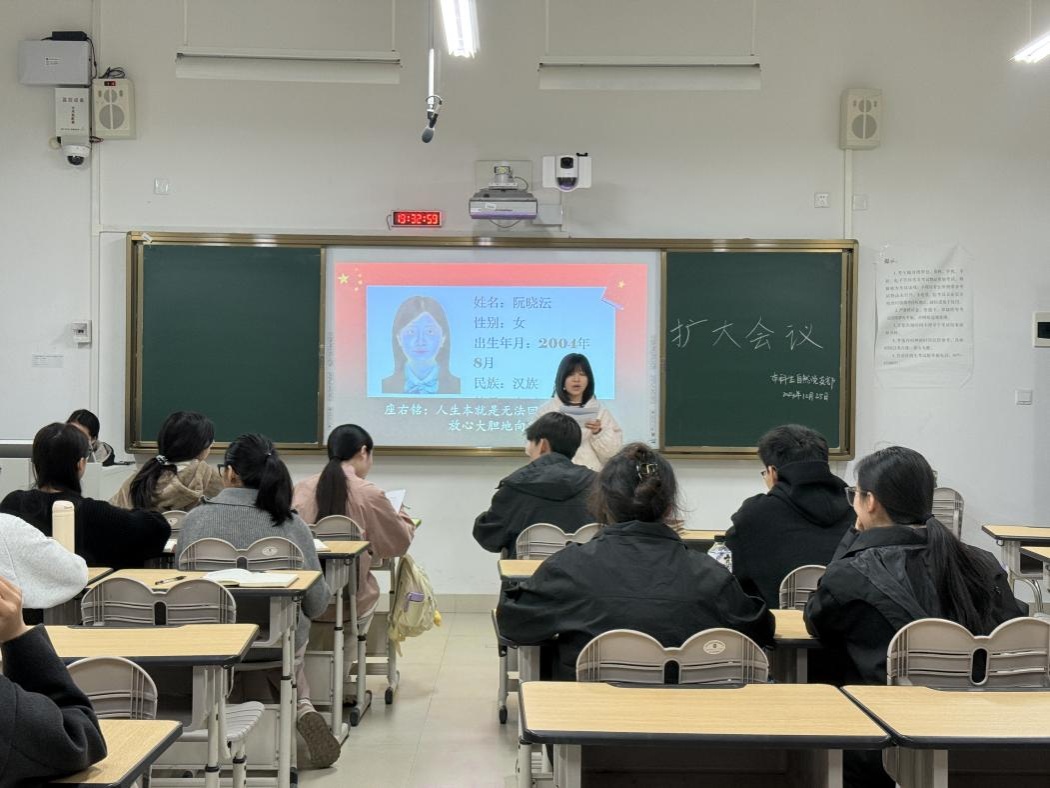 2024年12月25日,必威西汉姆联本科生自然党支部在武鸣校区1号教学楼211教室召开扩大会议。本次会议由党支部书记黄珊珊主持,全体党支部成员共同参与。