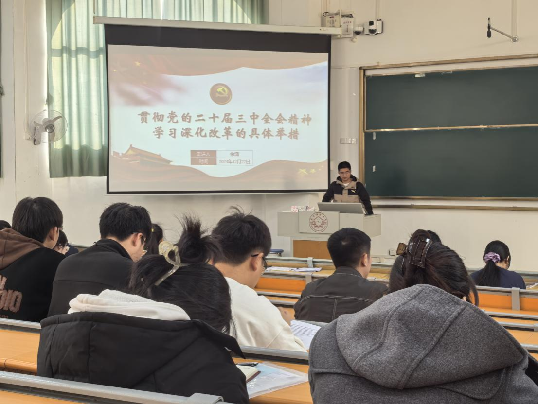 2024年12月22日下午,必威西汉姆联地理学研究生第二党支部在武鸣校区1号教学楼214教室开展支部十二月份的党课学习。此次会议以“贯彻党的二十届三中全会精神,学习深化改革的具体举措”为主题。会议由余潇同志主持,支部全体党员参加。