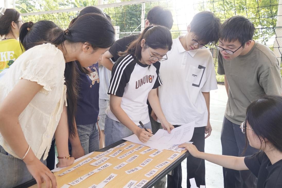 党日活动以“初心领航,同心奋进”游园活动形式开展。活动伊始,主持人详细介绍活动流程与游戏规则,此次党日活动共设有“薪火传红·党史配对”、“圈定红时·传脉悟心”、“传火聚心·红薪接力”三个游戏关卡。这三个关卡既考察了同学们对红色历史的熟悉程度,也强化了团队凝聚力,大家在互动中感悟红色文化内涵。经过激烈角逐,活动最终评选出十四组获奖队伍并颁发奖状及精美礼品,同时为所有参与者送上参与奖。活动结束后,全体人员共同清理场地并合影留念,为本次主题党日活动画上圆满句号。