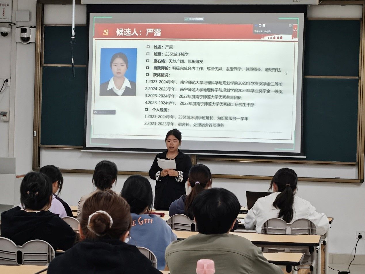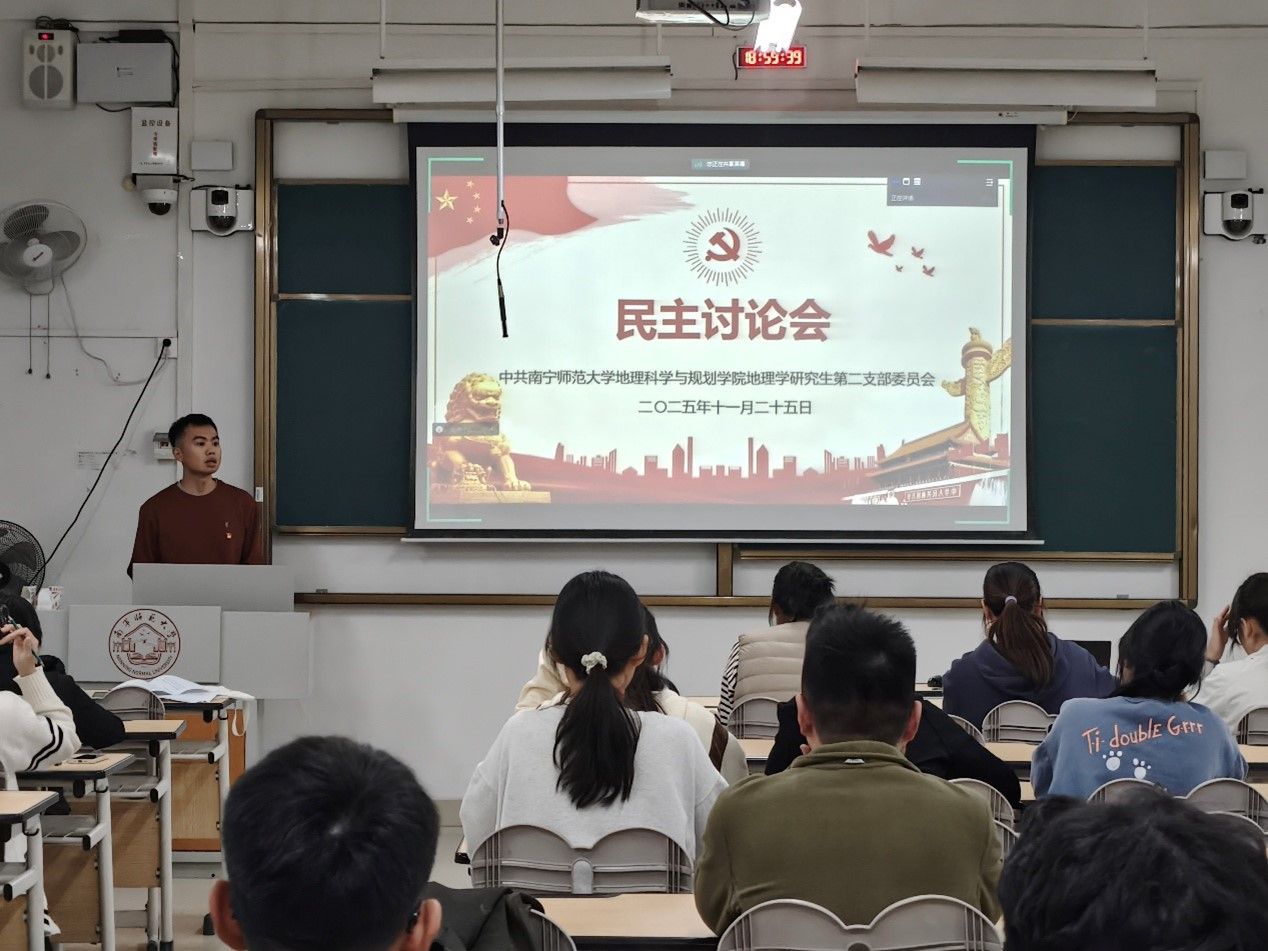 11月25日,必威西汉姆联地理学研究生第二党支部在武鸣校区1号教学楼220教室召开民主讨论会。会议由党员韦仕权主持,党支部全体党员与各班积极分子共同参加。