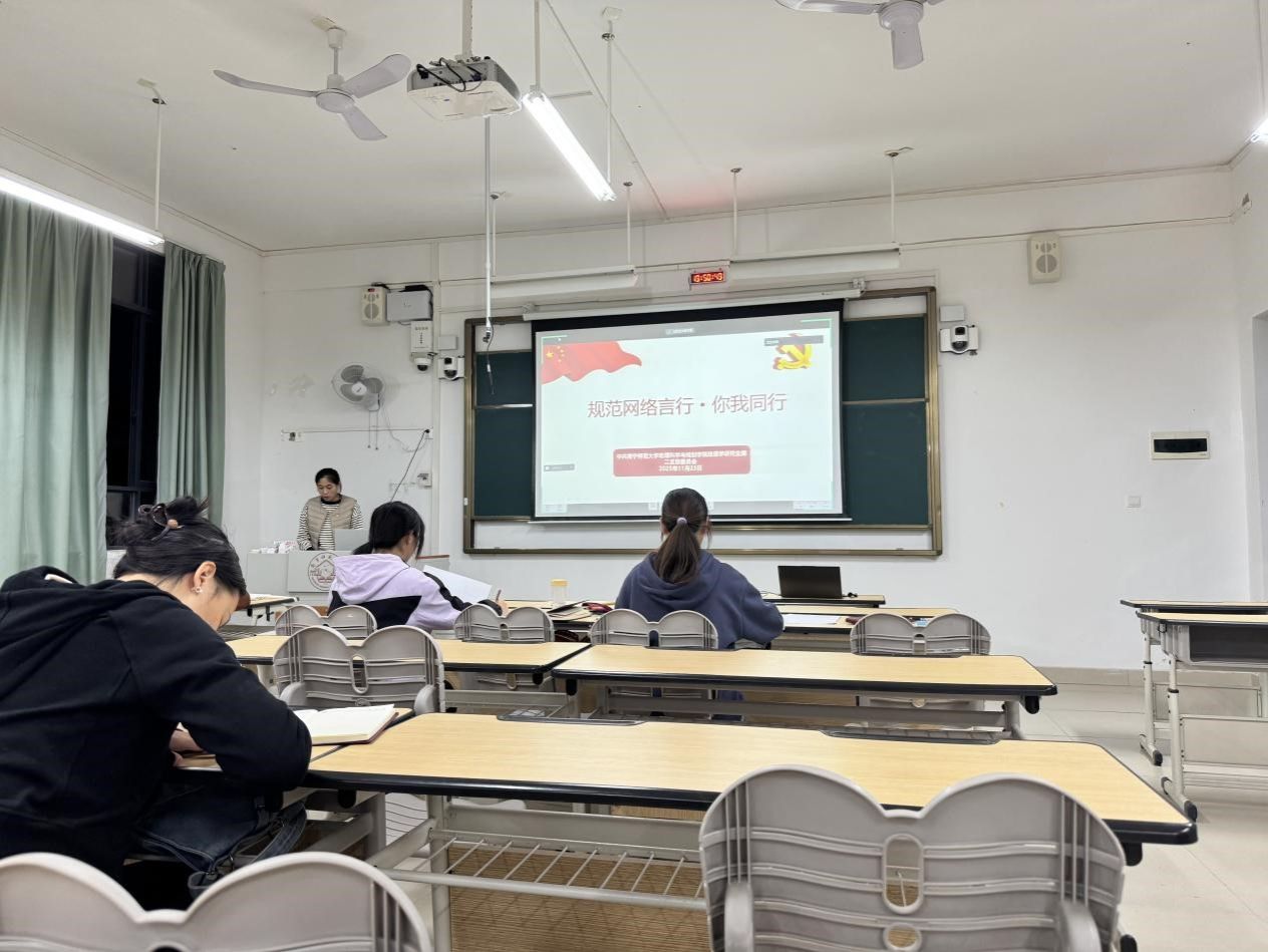 11月23日,必威西汉姆联地理学研究生第二党支部在武鸣校区1号教学楼220教室召开“规范网络言行・你我同行”主题教育活动。活动由党员张茜主持,党支部全体党员参加。