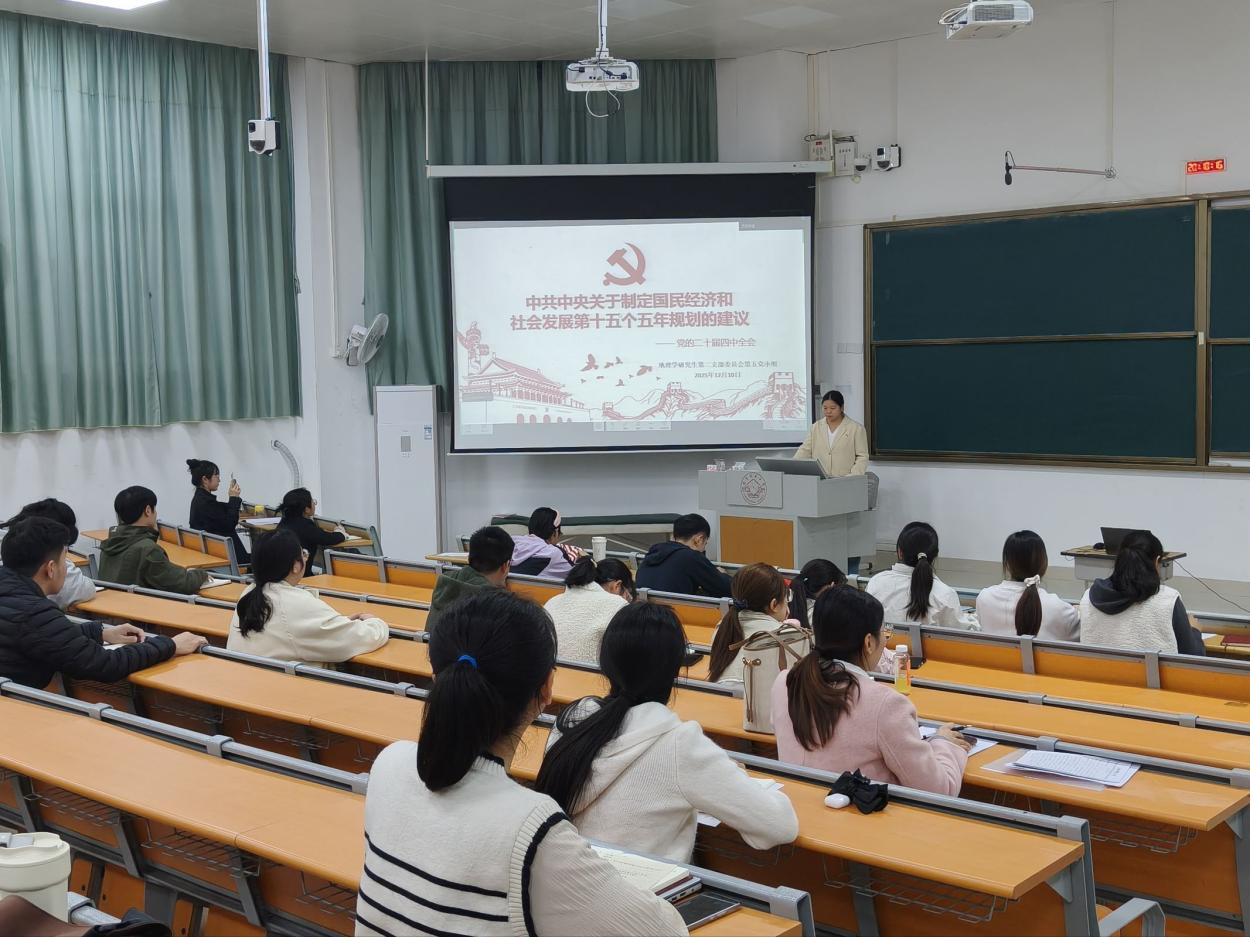 12月10日,必威西汉姆联地理学研究生第二党支部在武鸣校区1号教学楼214教室召开了以“学习党的二十届四中全会《中共中央关于制定国民经济和社会发展第十五个五年规划的建议》精神”为主题的党小组会议。会议由王兴愿同志主持,党支部54名党员(含预备党员)参会。