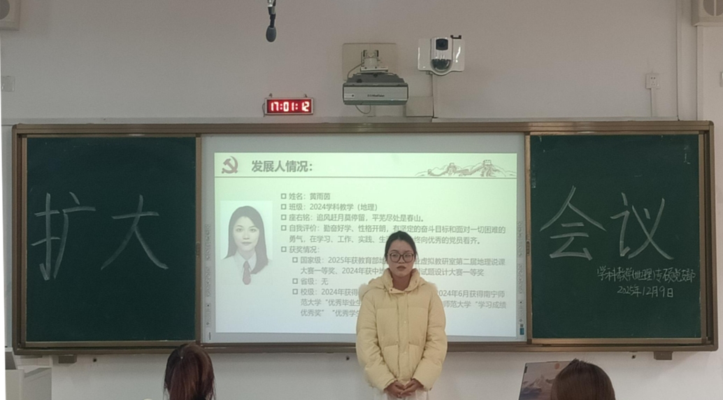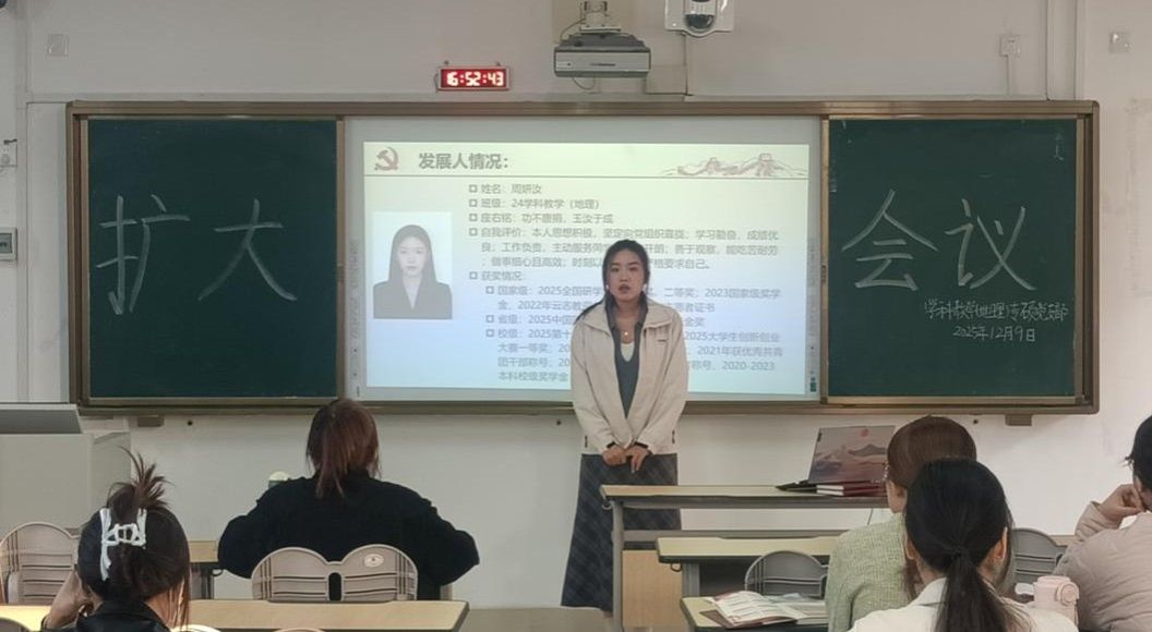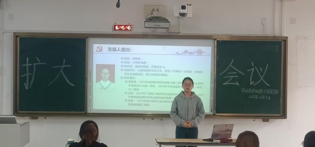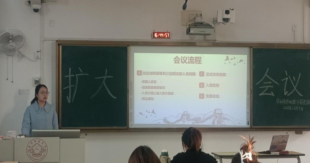 12月10日,必威西汉姆联学科教学(地理)专业硕士党支部在武鸣校区1号教学楼201教室顺利召开2025年下半年扩大会议。此次会议由党支部组织委员黄小主持,党支部39名党员(含预备党员)共同参加。