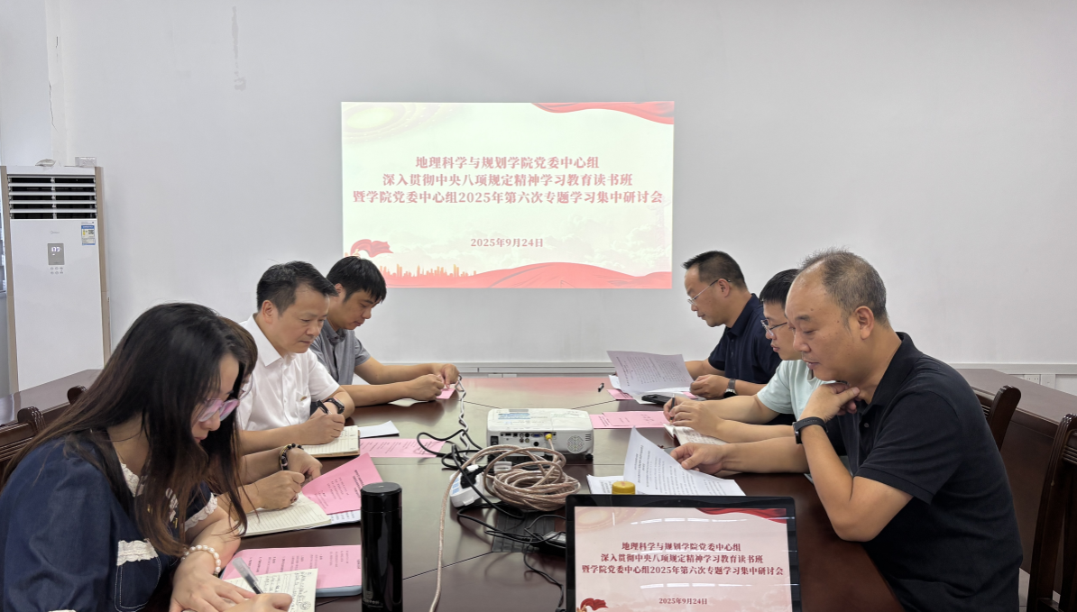 卢远副校长对研讨会进行了点评与指导。他首先肯定了学院党委本次理论学习中心组开展的学习活动,指出此次理论学习准备充分、程序规范、重点突出,与会人员在会前均对学习材料进行了充分研读与深入思考,会上大家结合各自工作实际,积极交流学习心得,具有针对性和主动性,达到了预期效果。同时提出两点要求:一是强化作风建设,聚焦服务发展。要将落实中央八项规定精神与推动学院工作紧密结合,把学习成效转化为解决学科发展问题的能力。尤其要聚焦基础教育、自然资源管理、国土空间规划等主攻方向,优化科研组织模式与资源调配,形成解决地方重大需求的攻关合力。二是对接行业需求,优化育人体系。要主动面向国土空间规划、生态文明建设等主战场,将行业最新标准、技术动态与实践案例深度融入教学。强化校企协同与实战训练,提升学生在真实情境下的规划、设计与解决复杂问题的能力,培养行业急需的高素质人才。