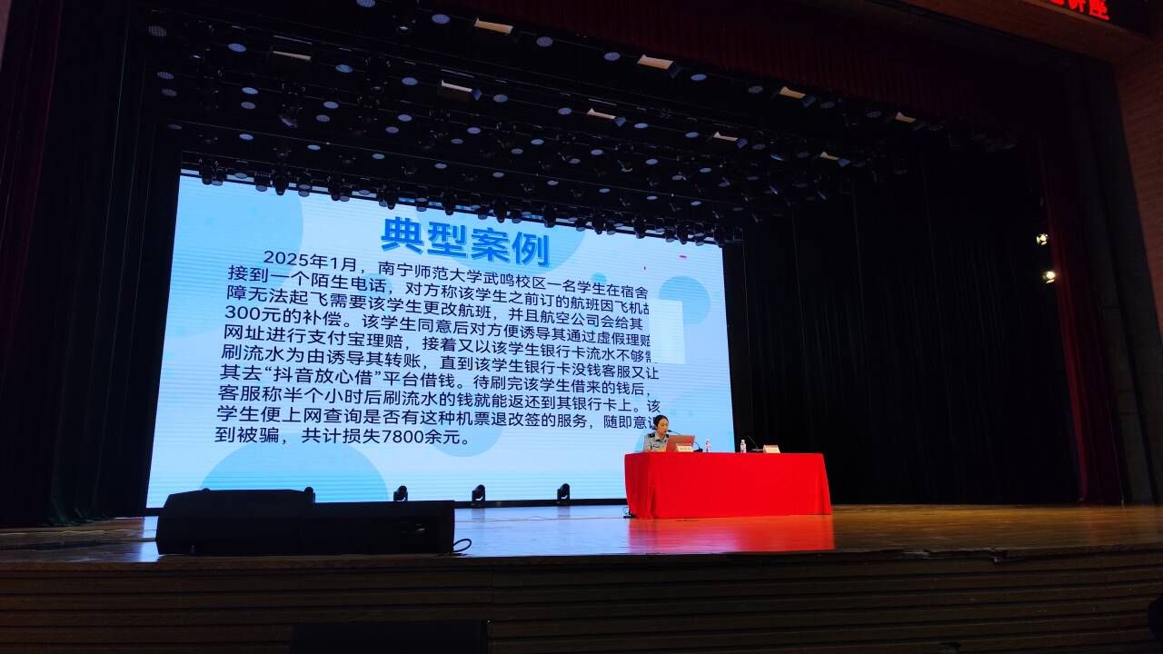 为加强诚信教育,提高资助育人成效,7月2日,南宁师范大学举办2025年学生资助“诚信教育主题月”专题讲座,并邀请南宁市公安局武鸣分局反诈中心民警邓幸梓到场主讲。必威西汉姆联组织学生积极报名参加,最终共50名受助学生参加此次讲座。