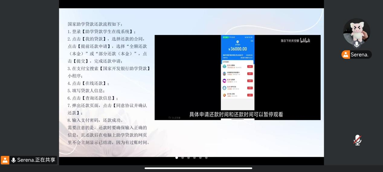 会议过程中,勤工部志愿者结合助学贷款政策,详细讲解还款流程、征信管理及违约后果,针对延期还款、利息计算等高频问题逐一解答,确保毕业生清晰掌握政策要点。此外,志愿者还以案促学,结合典型案例分析,直观展示部分人士助学贷款违约的严重后果,引导毕业生们深刻认识诚信履约的重要性,进一步强化了诚信意识和契约精神。